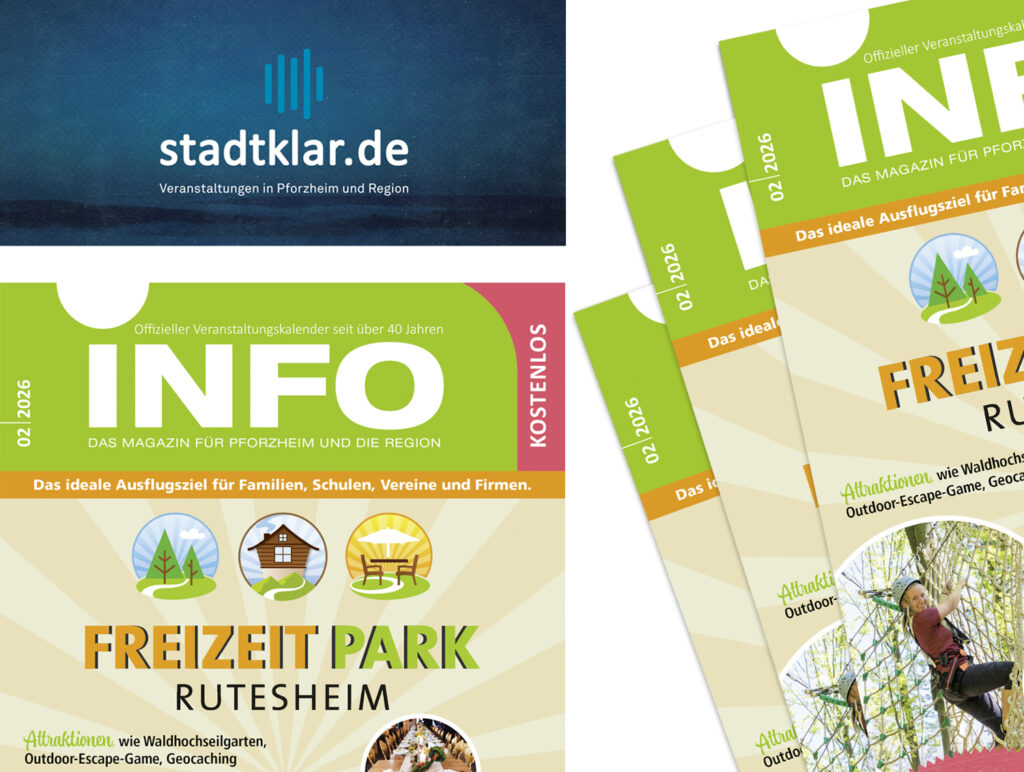 Wir bringen zusammen, was zusammen gehört: Menschen und ihre Lieblingsplätze, unsere Kunden und ihren optimalen Werbeauftritt, Lifestyle und Tradition, Verbundenheit und den Blick in die Zukunft, die Wirtschaft und die Kraft unserer Unternehmen, Freizeitangebote und begeisterte Entdecker. Wer sich regelmäßig kleine oder große Erlebnisse gönnt, versprüht einfach Glückshormone. Dazu möchten wir mit unserem INFO Magazin beitragen und haben es uns zur Aufgabe gemacht, das Geschehen in der Region unterhaltsam und informativ zu transportieren und das seit fast 40 Jahren. Wir spiegeln das Leben in Pforzheim und der Region wider, mit dem INFO Magazin und vielen anderen Broschüren.